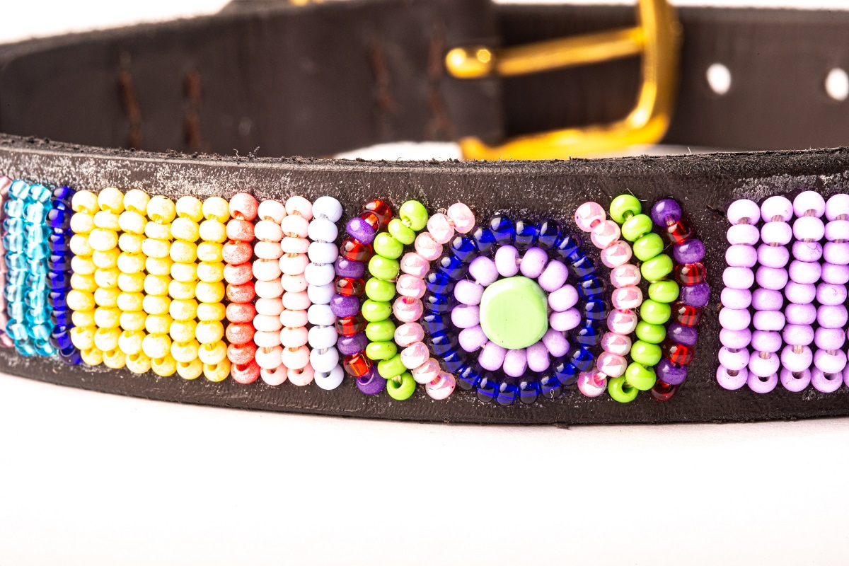 Esta colección Kennya es emblemática de los collares de perro hechos completamente a mano con diferentes figuras que representan diferentes personalidades del perro. Cada uno de los dibujos tiene su propio simbolismo ancestral de acuerdo con la energía de los colores y los patrones del diseño únicos que nos enseña la misión de los perros en la tierra y cuál es su función en nuestra vida de acuerdo a los pueblos ancestrales.