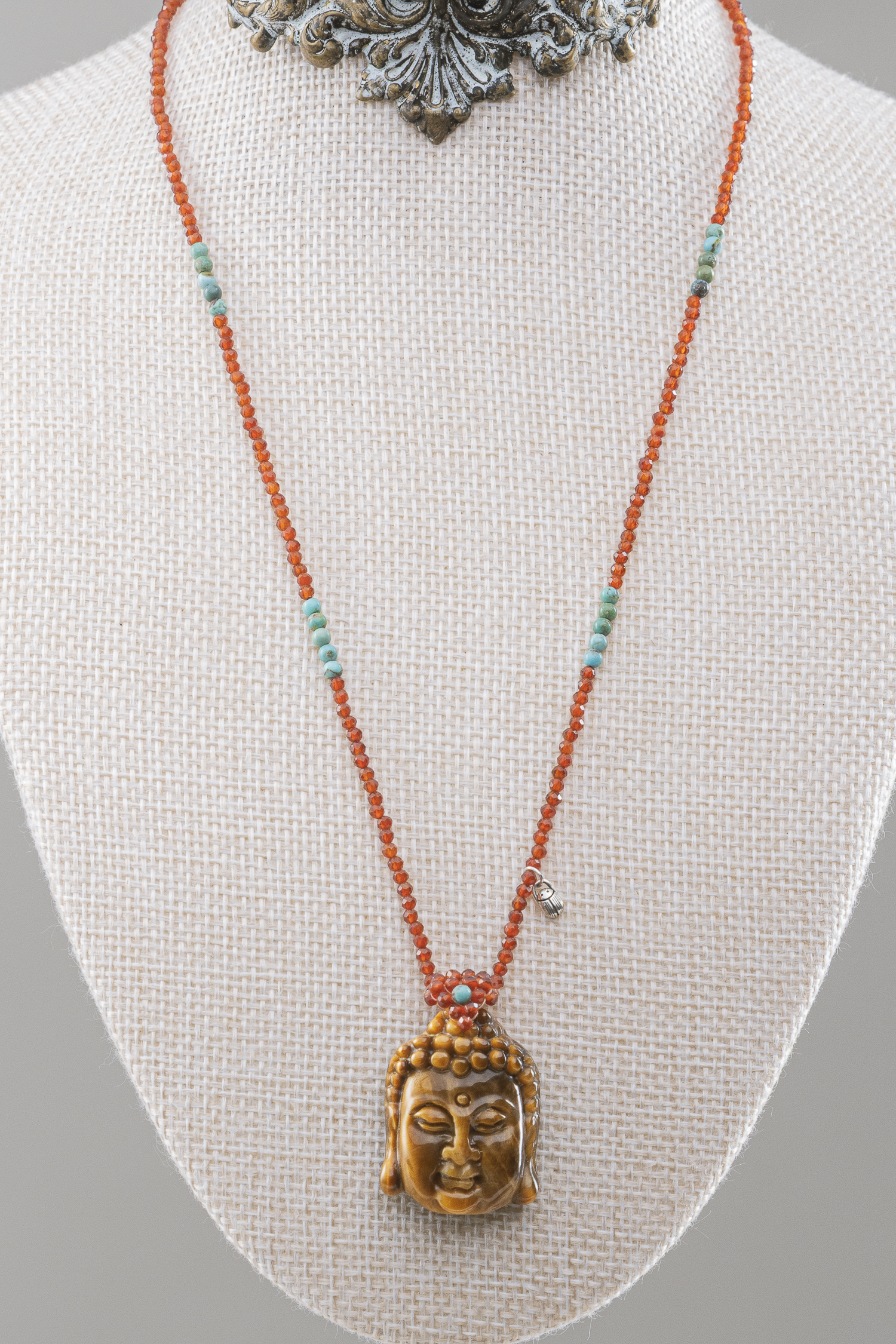 El diseño de este espectacular budita de la fortuna y la sabiduría tiene su origen en un un mercadillo dominical, situado en el barrio más antiguo de Singapur, Tiong Bahruen. Entre los puestos llenos de historia y tradición, me encontré varias piezas maravillosas con esta talla tan fina que destaca por los detalles esculpidos en el material favorito mío: el Ojo de tigre. Esta elección de material no solo aporta belleza, sino que también añade un significado profundo a la creación.