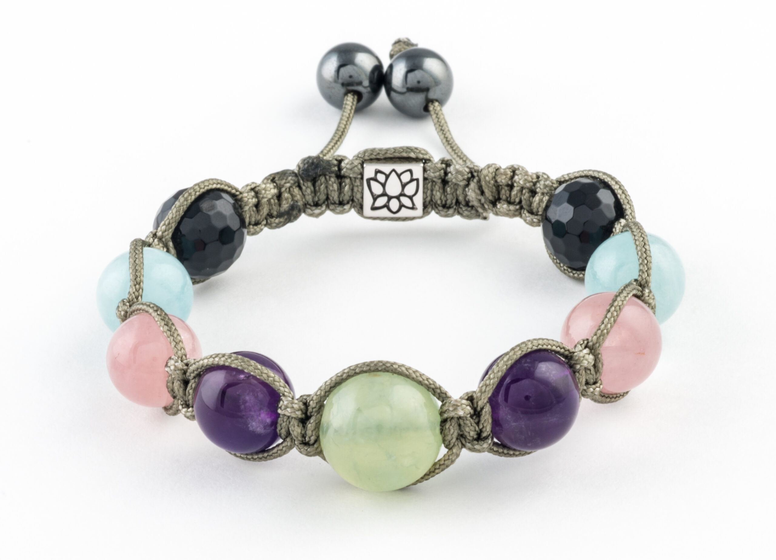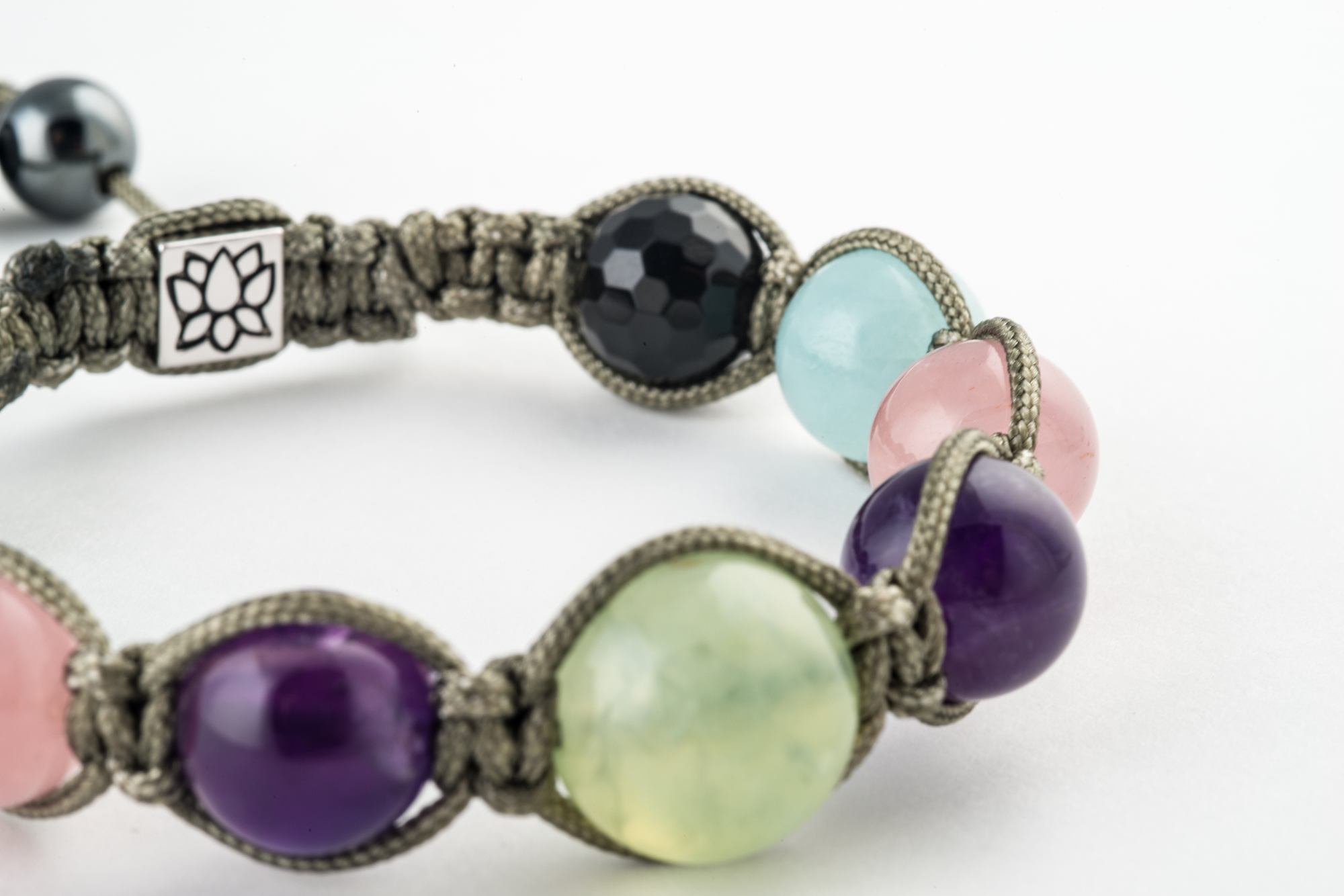 Receta energética: Prenhita, Amatista, Cuarzo Rosa, Piedra Angelita, Ágata, Magnetita, cierre plata 9.25.