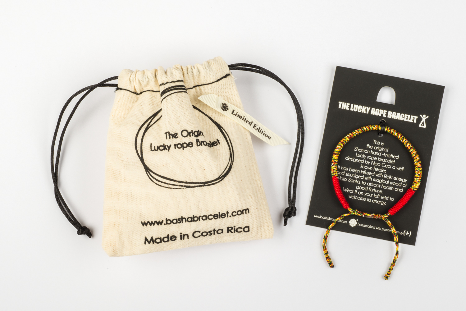 Esta es la pulserita Chamánica, anudada con el tejido original de las comunidades indígenas Maleku y diseñada en conjunto con nuestra Lectora de aura Naomi C. Santelmo.