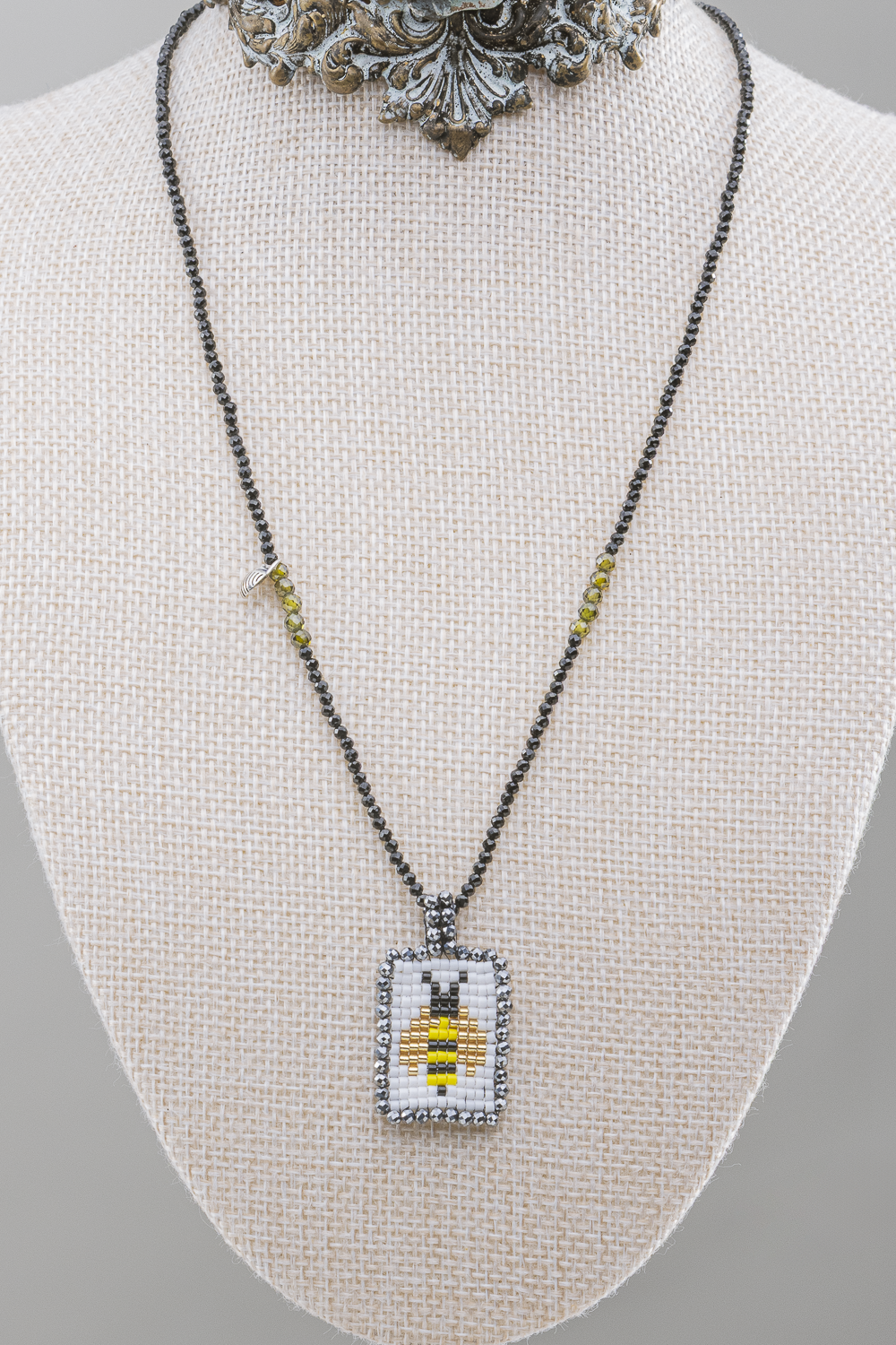 He rellenado esta abejita con las más finas cuentitas japonesas Miyuki, para resaltar el diseño y le he confeccionado un marco de piedritas brillantes genuinas de Terahertz